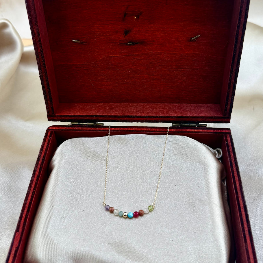 Customize your very own secret message. Wear your story close to your heart with our exquisite acrostic beaded necklace—a timeless piece where every gemstone whispers a letter, and every letter holds meaning only you know.