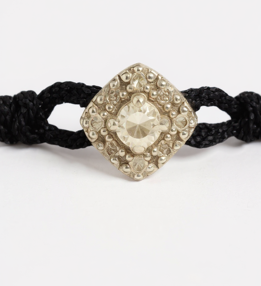Solid 10k White Gold Diamond Charm Bracelet on Nylon Cord